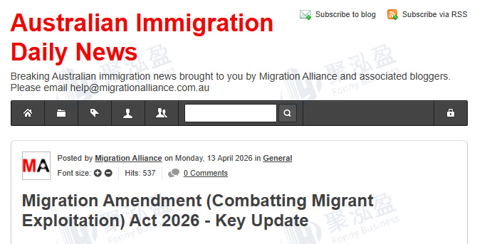 2026年4月8日,澳洲内政部正式颁布了《2026年移民修订(打击剥削移民)法案》,对雇主担保体系作出专项修订。