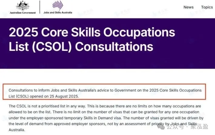 澳洲政府近日官宣,澳大利亚就业与技能局(JSA)将于8月25日启动对2025年核心技能职业清单(CSOL)的全面审查和公众咨询。