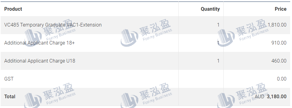 - 18岁以上的副申请人:910澳币(原455澳币);