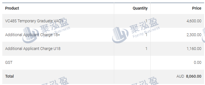 - 18岁以上的副申请人:2300澳币(原1150澳币);