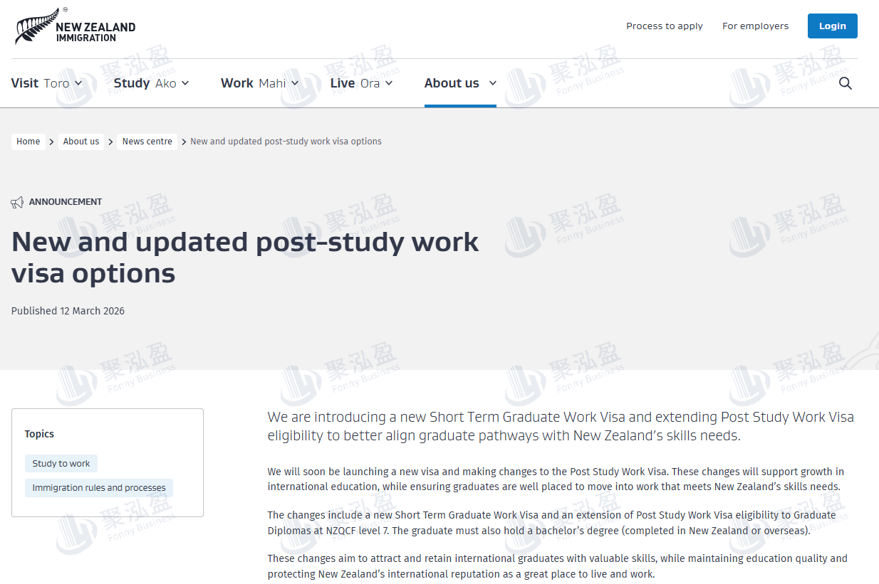 当地时间3月12日,新西兰移民局官宣两大王炸调整:全新短期毕业生工签上线、毕业后工签大幅扩围,预计将于2026年底全面落地实施。