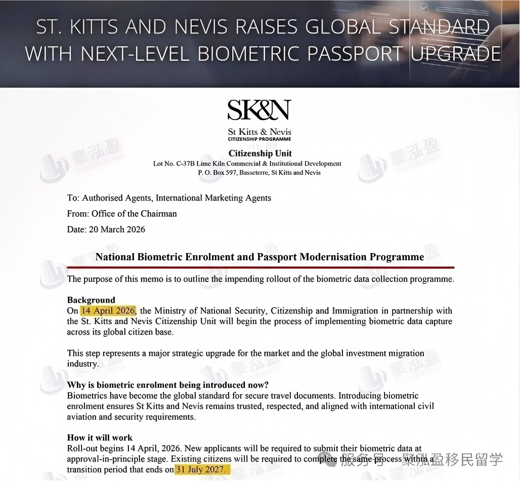 根据文件内容,从2026年4月14日起,所有通过投资入籍拿公民身份的人,都得亲自去指定地点,采集面部图像、指纹和数字签名等信息。