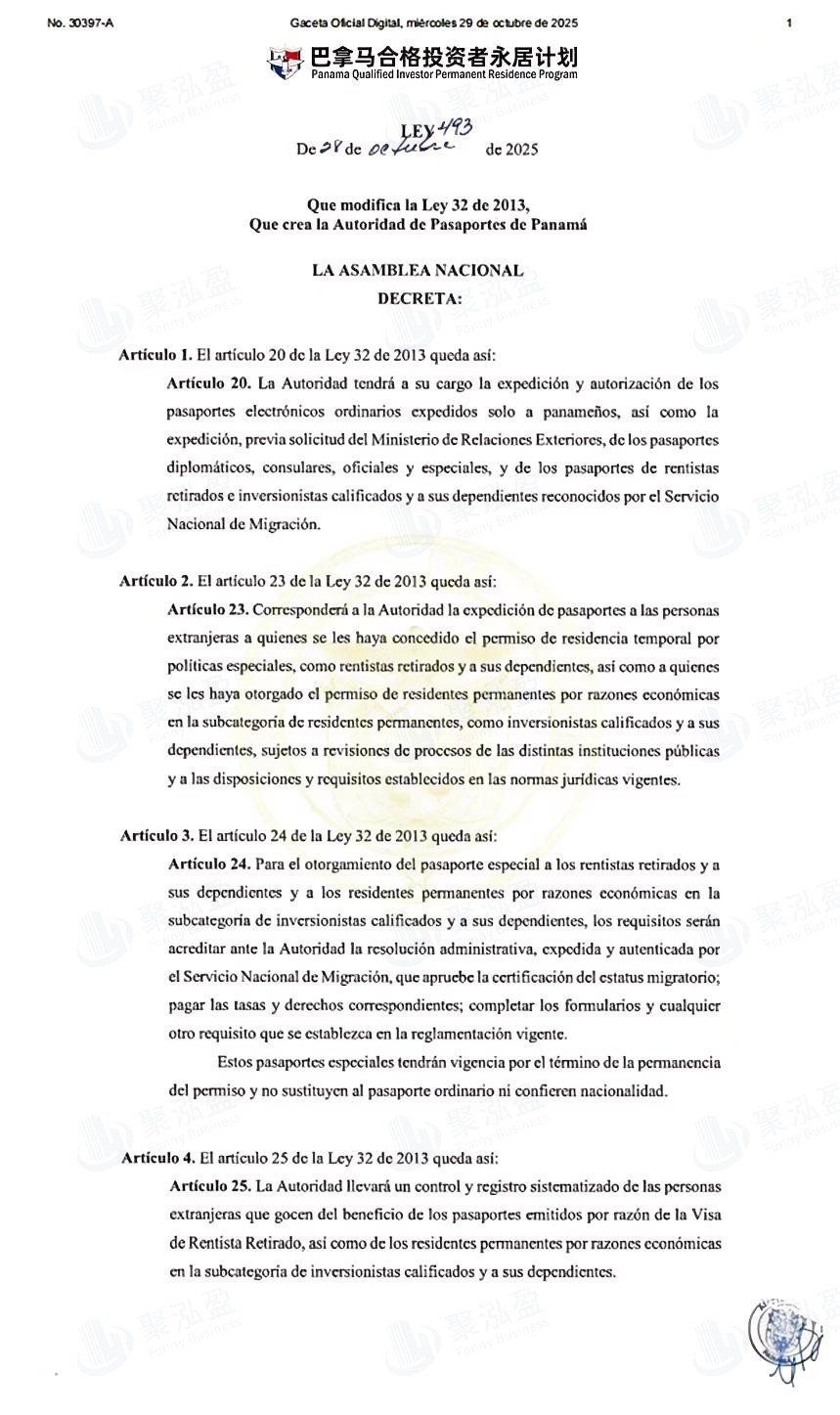 2025年10月29日,巴拿马总统正式在官方公报上签署《护照法修正案》,新法案批准为符合资格的外国投资者颁发“旅行护照”。