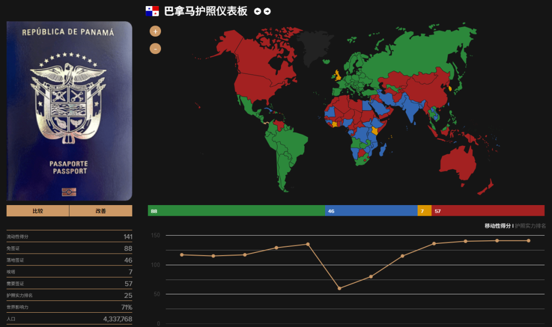 - 巴拿马旅行护照:可免签包括欧盟申根区、英国、日本、新加坡等在内的140多个国家和地区。