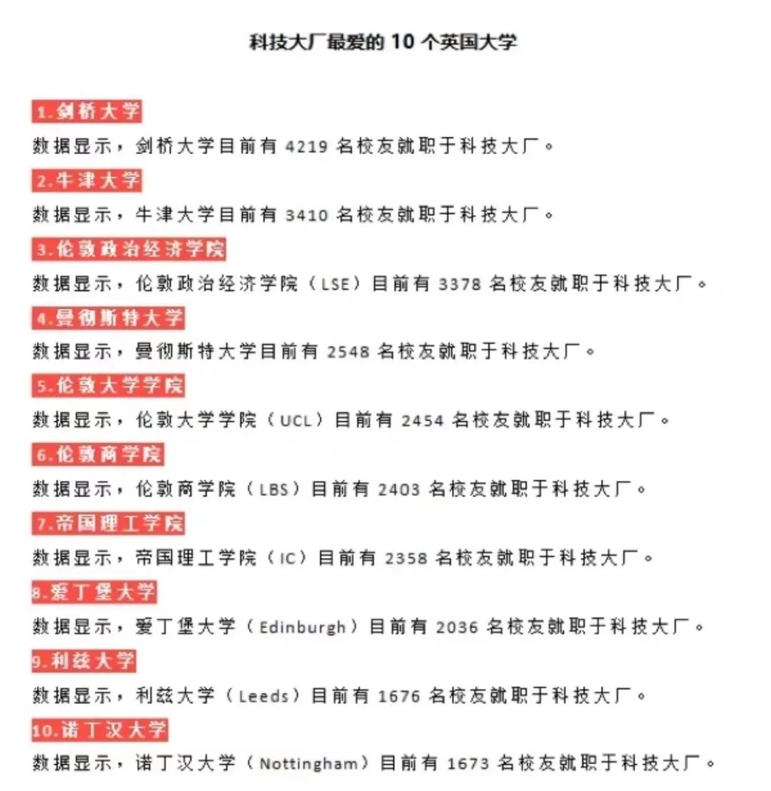大厂最爱的英国院校